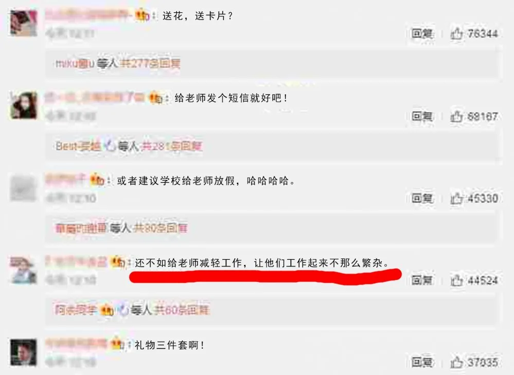 在評論中,一條想讓老師工作更輕松的評論吸引了小編的注意