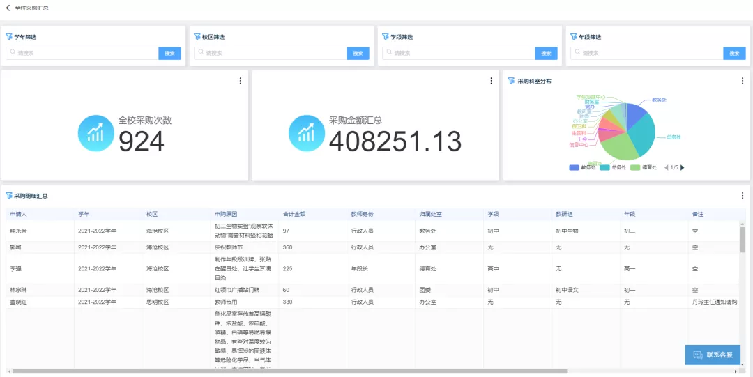 涵蓋物品申領、資產管理、設備報修、項目管理等模塊,科學標準化的后勤管理有效提升學校管理水平。