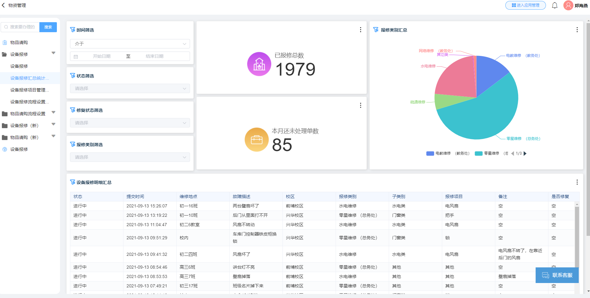 智慧校園后勤管理報修系統是企事業單位等應用場景的設備設施的維修進行網絡化管理,進行快速報修維修工單流轉。