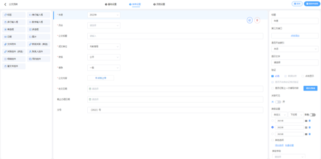 易碼云零代碼平臺采用可視化設計模式,所見即所得,拖拽式編輯快速便捷,控件調用區、表單內容區和屬性配置區一覽無余,同時平臺支持控件自定義拓展,用戶可結合自身業務需求自由添加及復用。