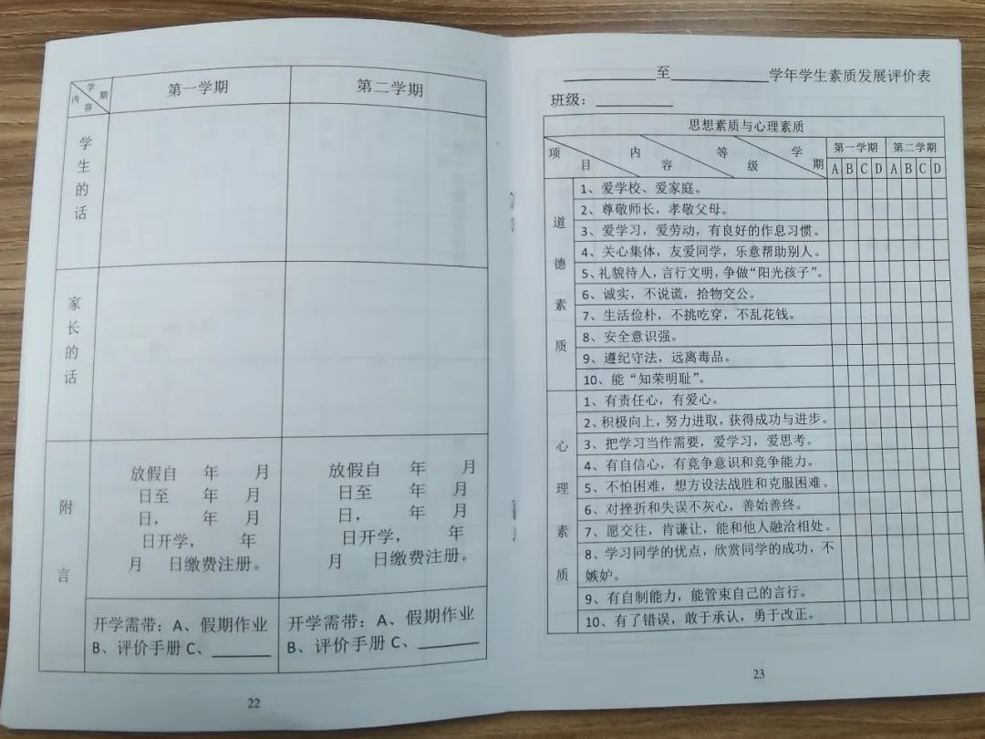 老師們評價完后,會讓學生把手冊帶回去給家長查看并寫一段話,下學期開學后需要學生帶回學校。