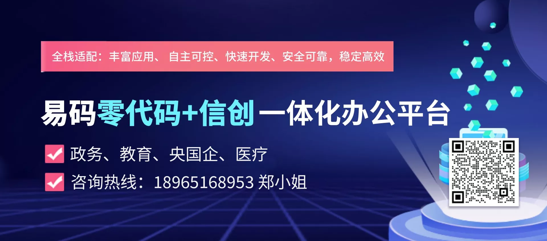 平臺通過易碼云零代碼引擎組件構建豐富的應用場景,滿足不同政務、教育、央國企、醫療行業的各項需求